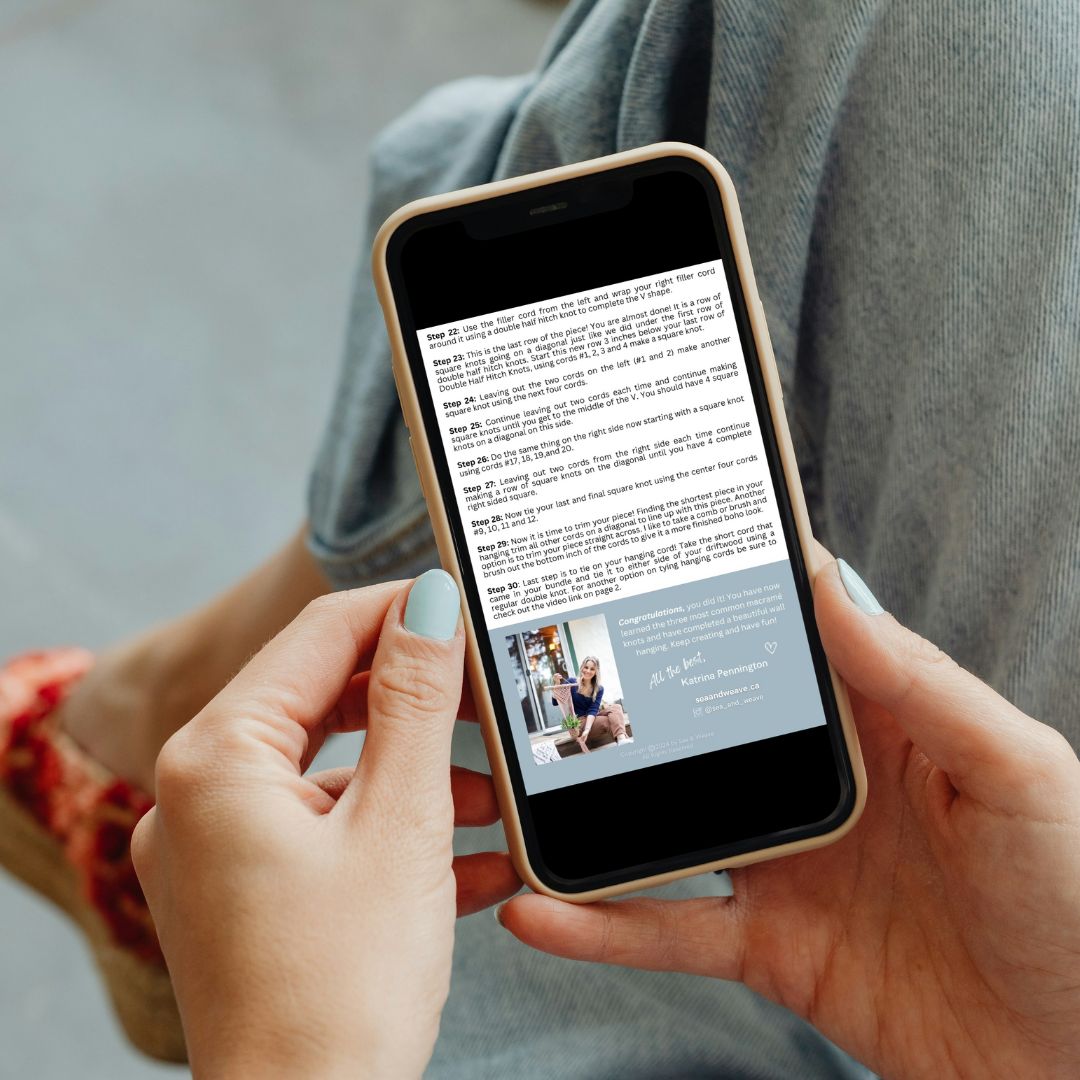 Already have your own macramé supplies? This e-book will walk you through a new project. Learn a new macramé pattern with this written and video tutorial that you can take with you on the go. Available to view on any device once downloaded.