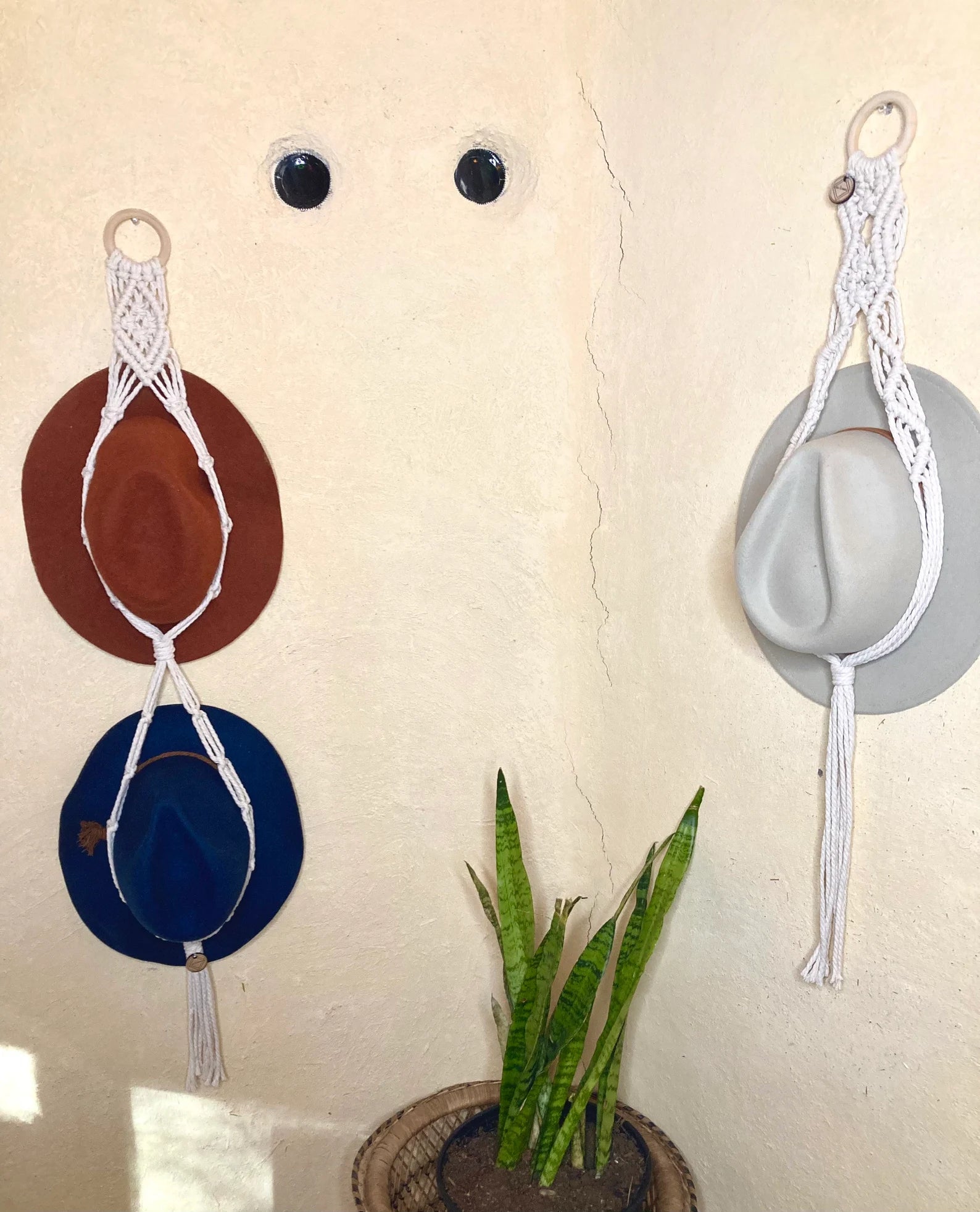 These beautiful hangers are the perfect way to display your hats and add a little boho style to your home. They come in three different sizes small (1 hat) medium (2 hats) or large (3 hats). Grab one for yourself or as a gift for the hat lover in your life.
