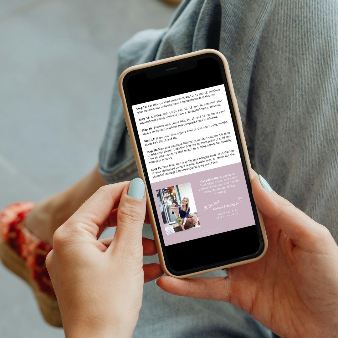 Digital Download for the Macramé Heart Wall Hanging pattern with video tutorial.
